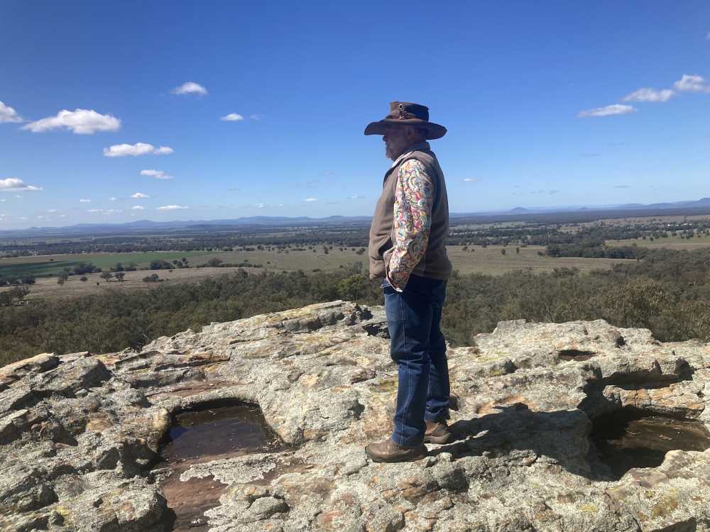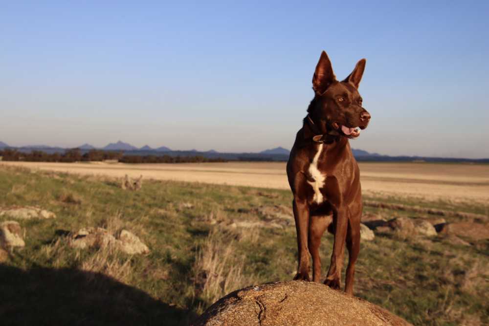 This is our sheep dog Kelly. She jumped up on the rock and was looking at a mob of sheep in the distance.
