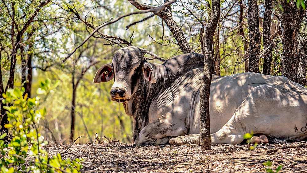 The Brahma Bull is an impressive specimen, characterised by its strong build and lustrous coat that catches the light beautifully. This bull exhibits excellent conformation and a calm temperament, making it a valuable addition to any breeding program. As it rests in the shade by the Norman River in Normanton, QLD, it demonstrates not only its adaptability to the environment but also its potential for producing hardy offspring. Its presence is a testament to the robust qualities of the Australian outback cattle, reflecting both strength and resilience in the breed.