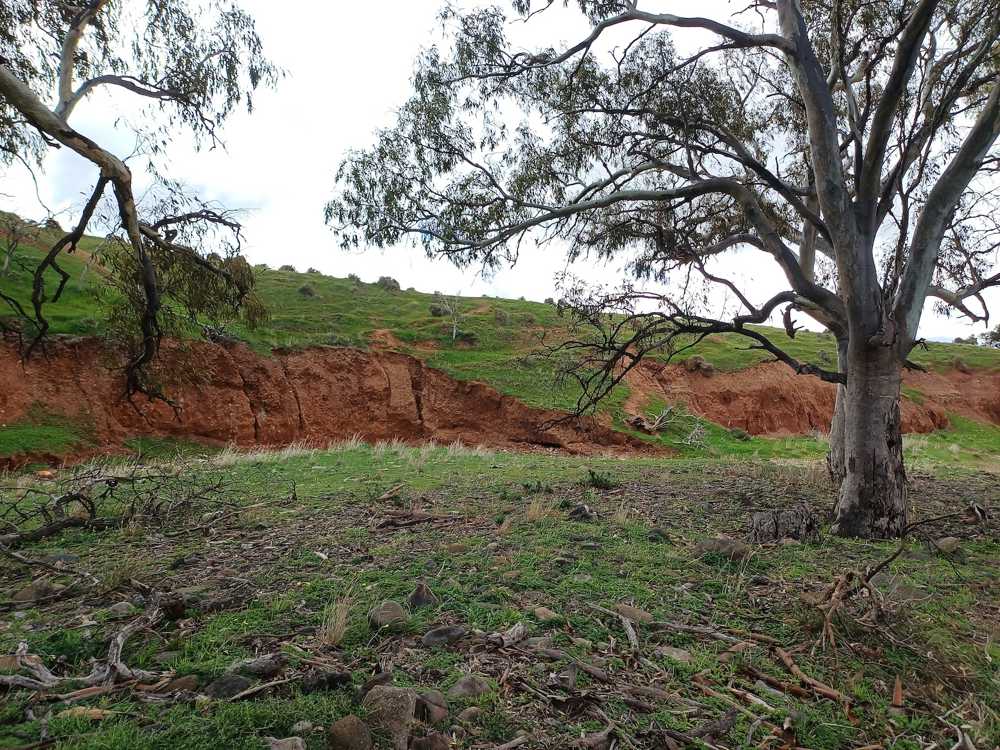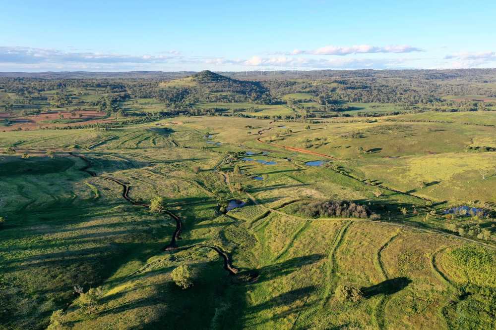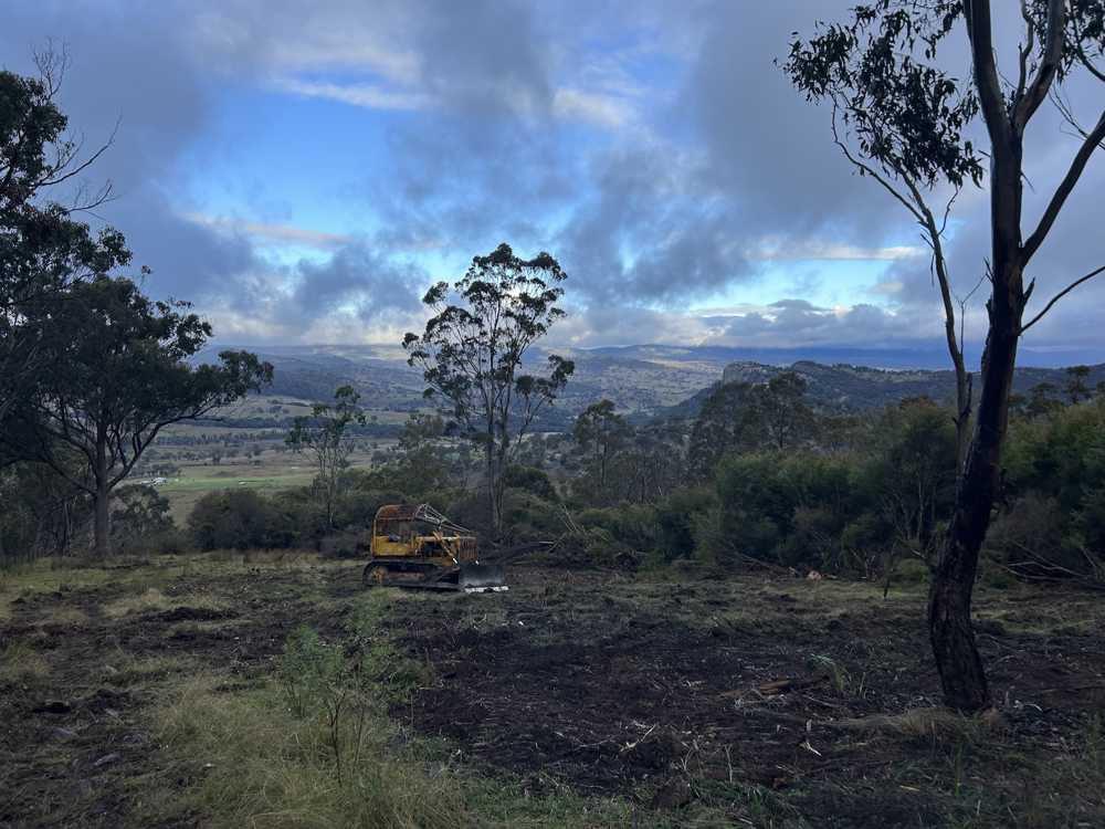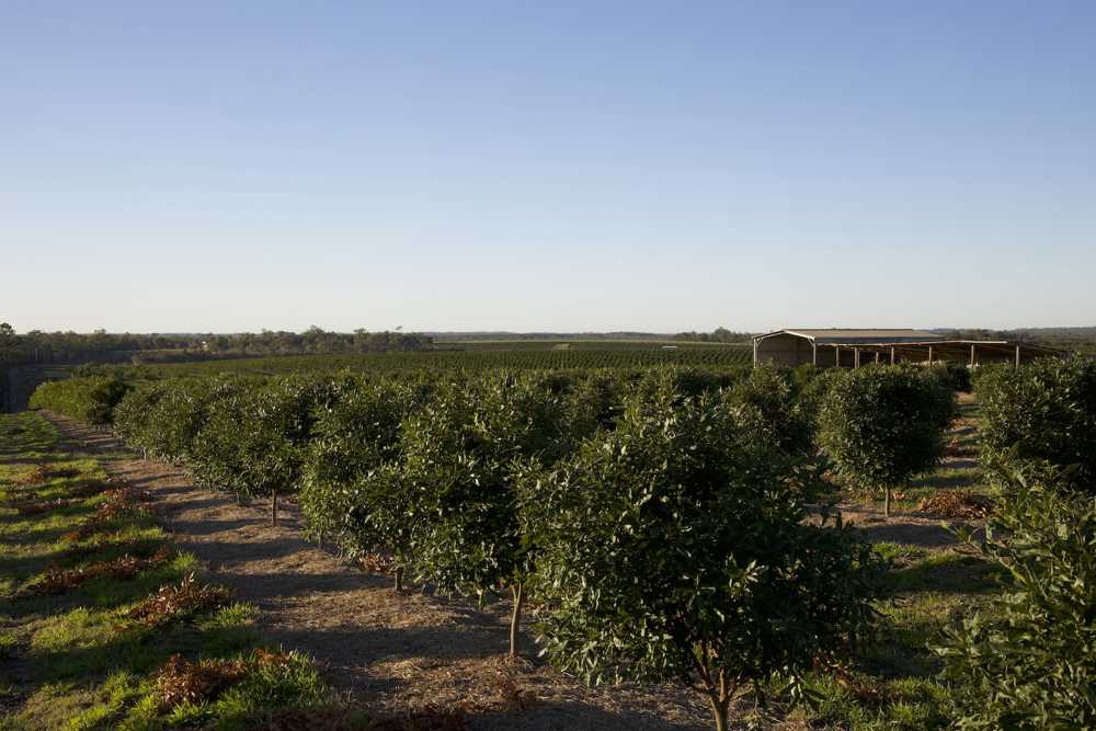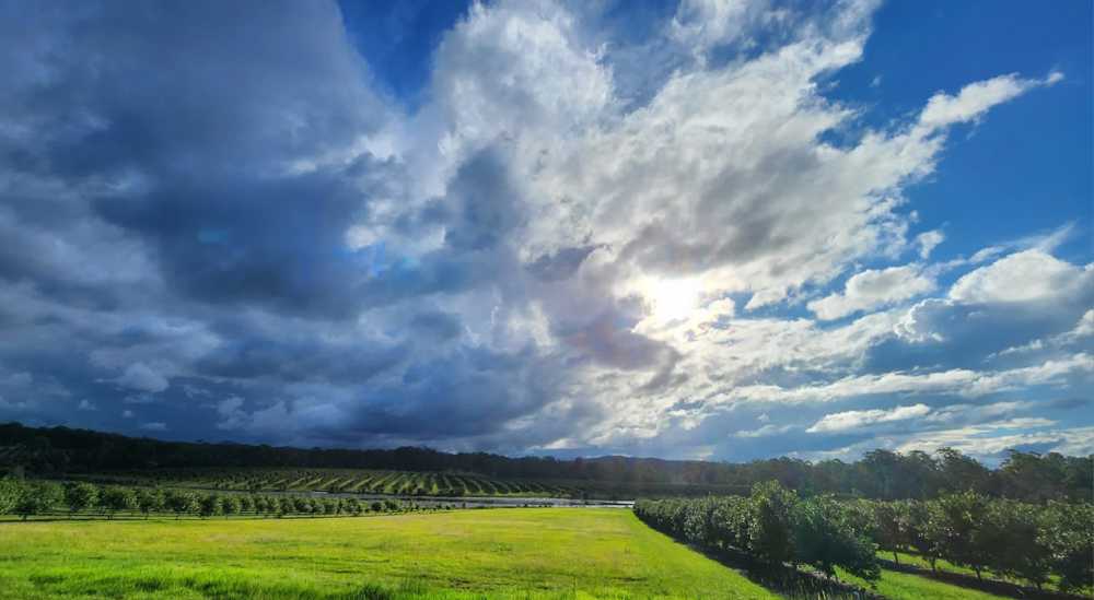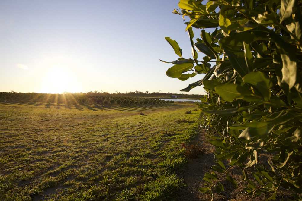 This picture is overlooking our young macadamia orchard, featuring an old machinery shed.
