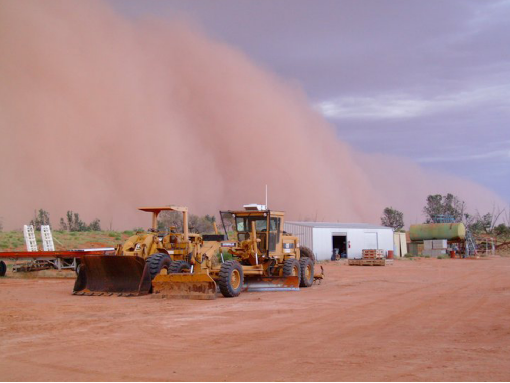 Landed at home in the paddock and greeted by the work dogs coming home from a long muster across the Nullarbor.