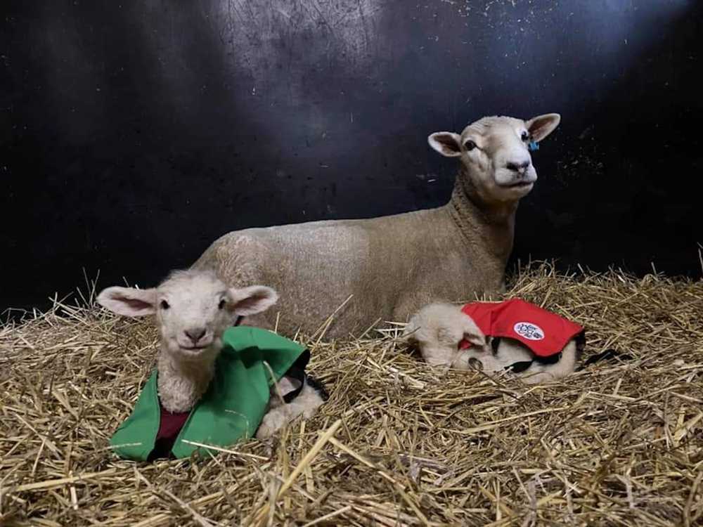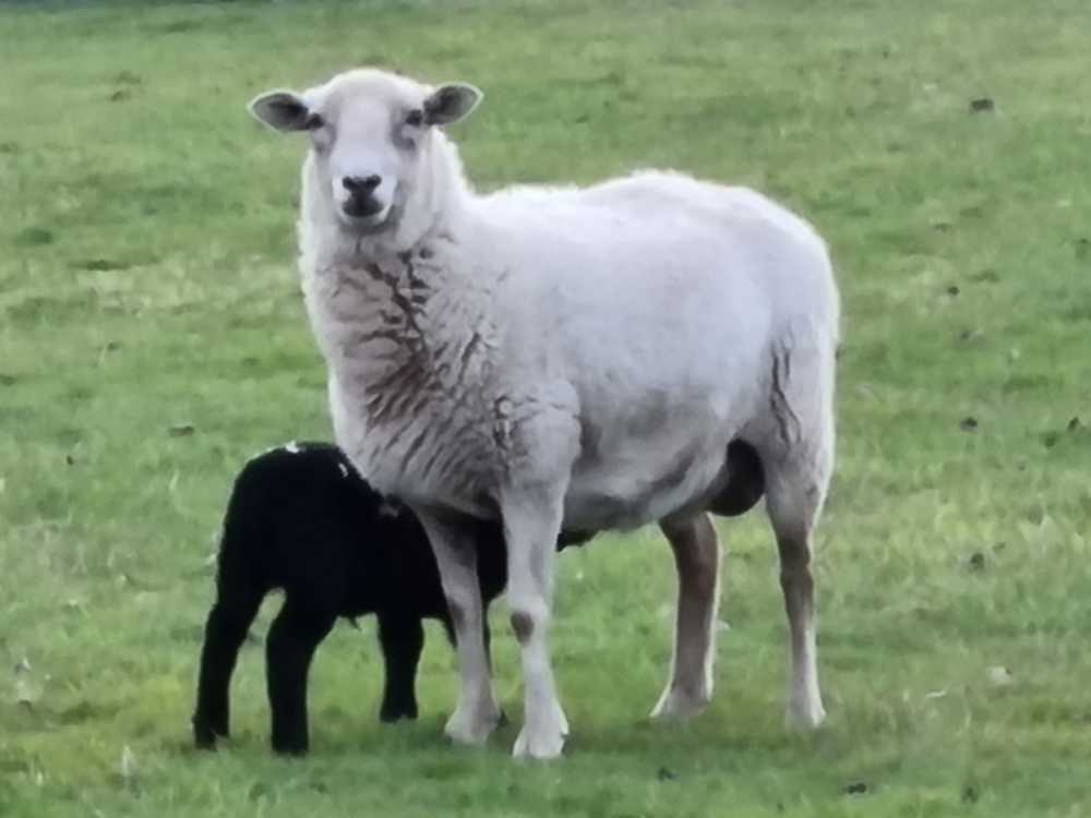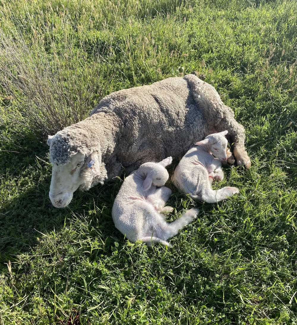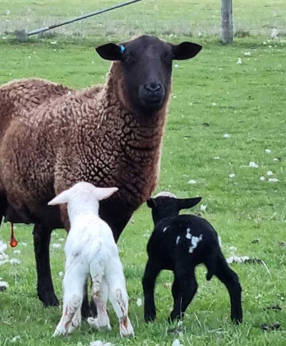 Isnt nature amazing brown ewe and twins a day old one white one black and white
