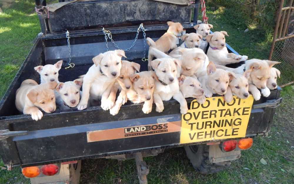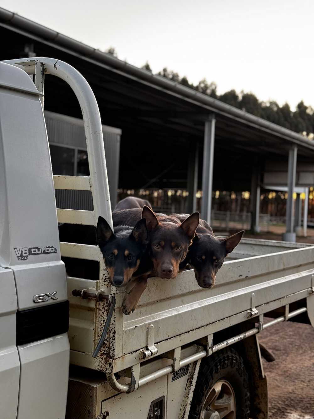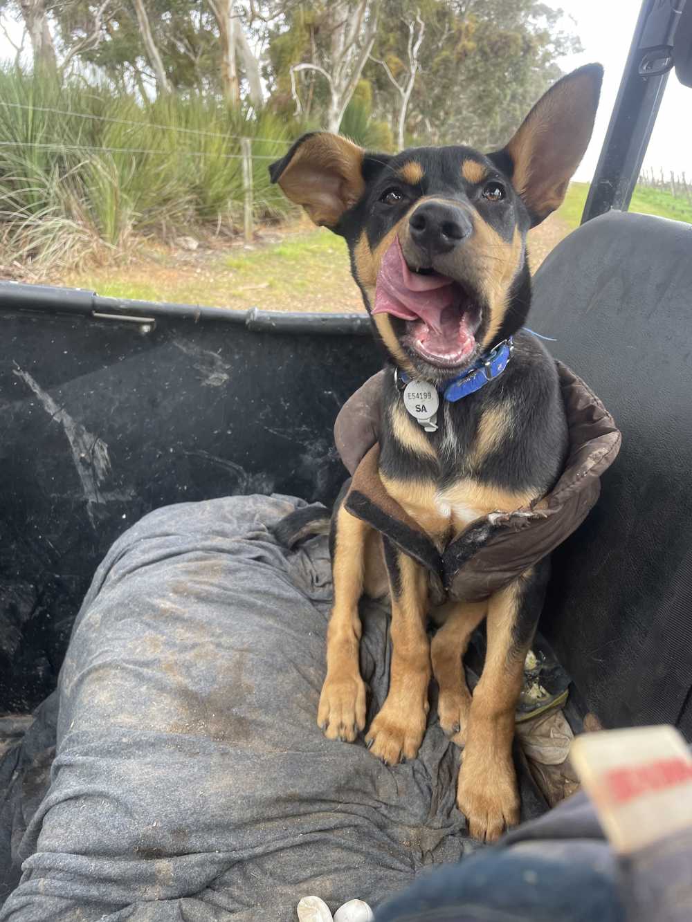 17 registered Kelpie pups learning the ropes. (Vehicle only stationary)