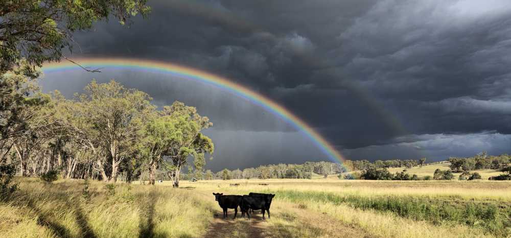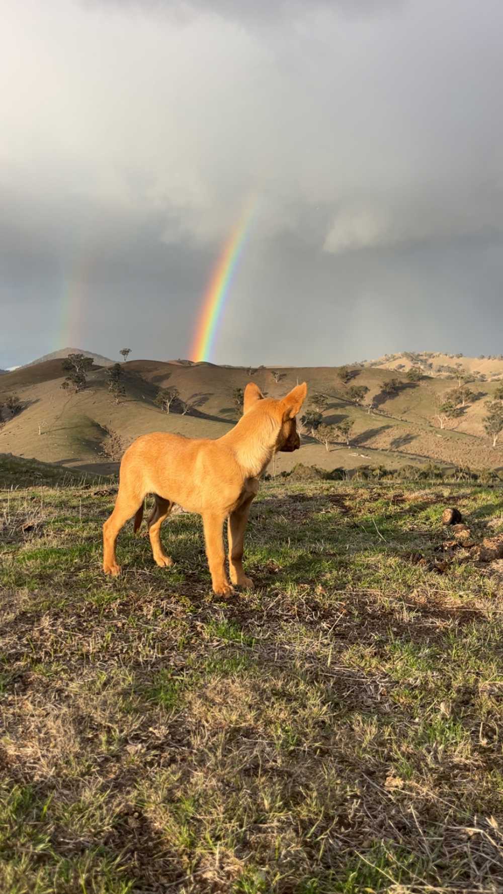 This was captured in our home paddock after a rain event went through. I went out to see the rainbow that had formed and noticed that the sheep were walking up the hill, right into the end of the rainbow.