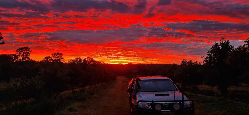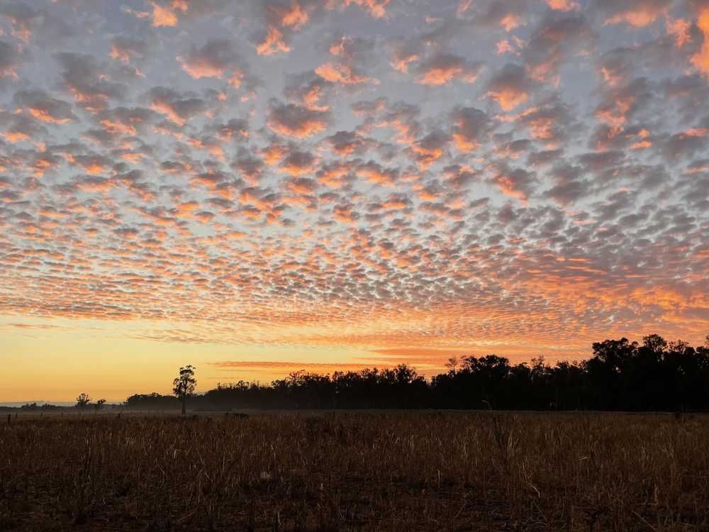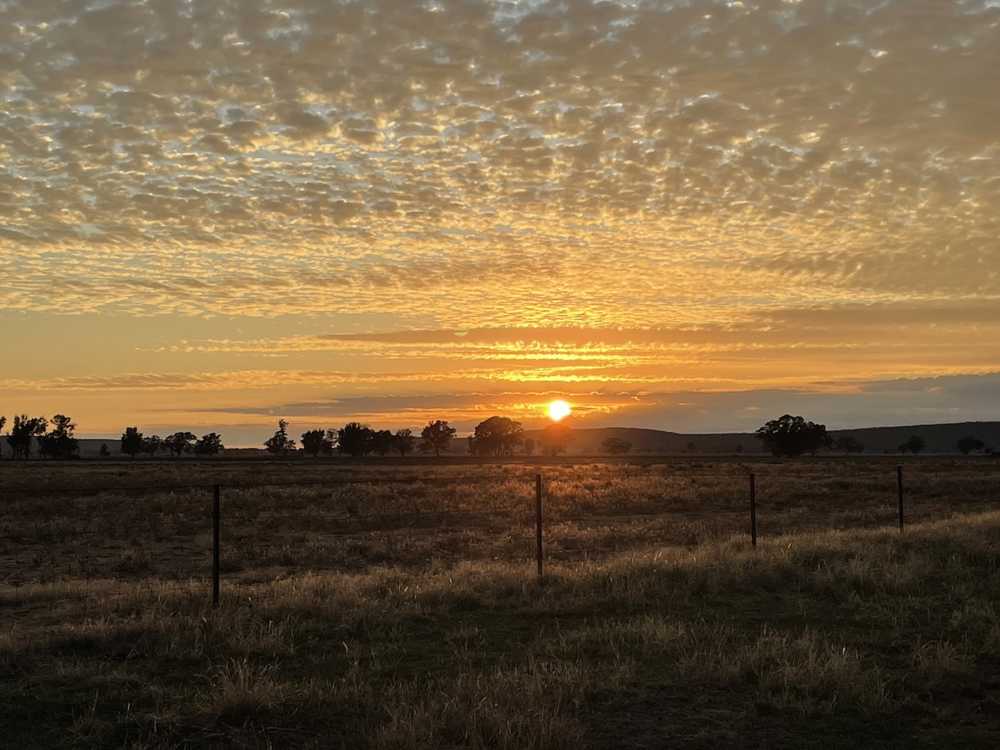 Sunrise April 2025 at Bedgerabong over stubble paddock