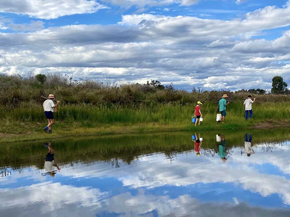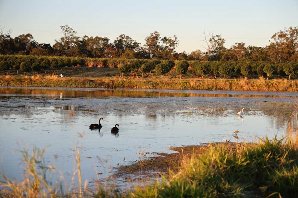Early morning sun and some of the local wildlife on our young macadamia orchard's dam.