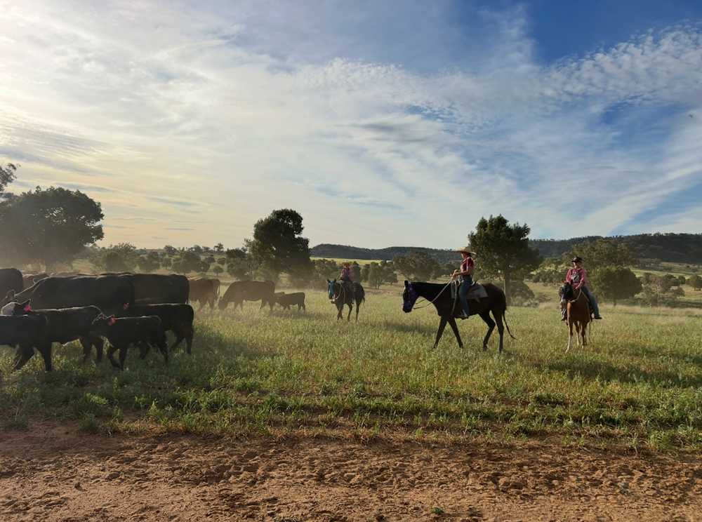 3 kids on 3 breakers moving cows and calves after calf marking. 😊