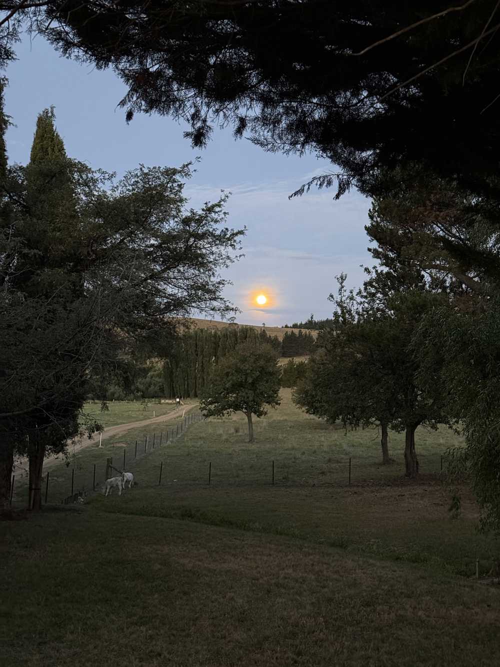 Our retired work dog relaxing at the end of the day by a fire, with the amazing winter solace sunset. What a place to live.