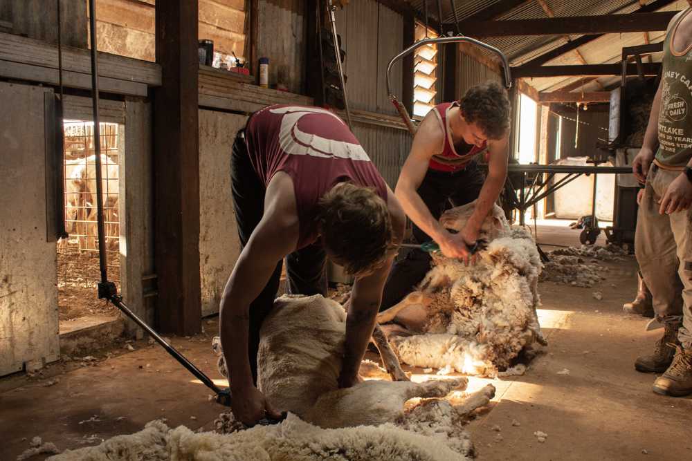Cut out day! The shearing team hard at work, trying to get through the last mob and finish the shed