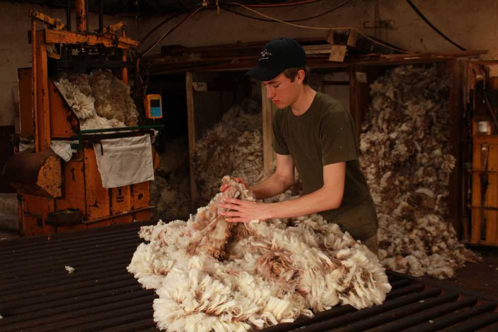 The importance of the shed team. Everyone has an important role whether it's the shearer, the roustabout, woolhandler etc. Here the final bundling of the fleece and preparing it for the right place to go.