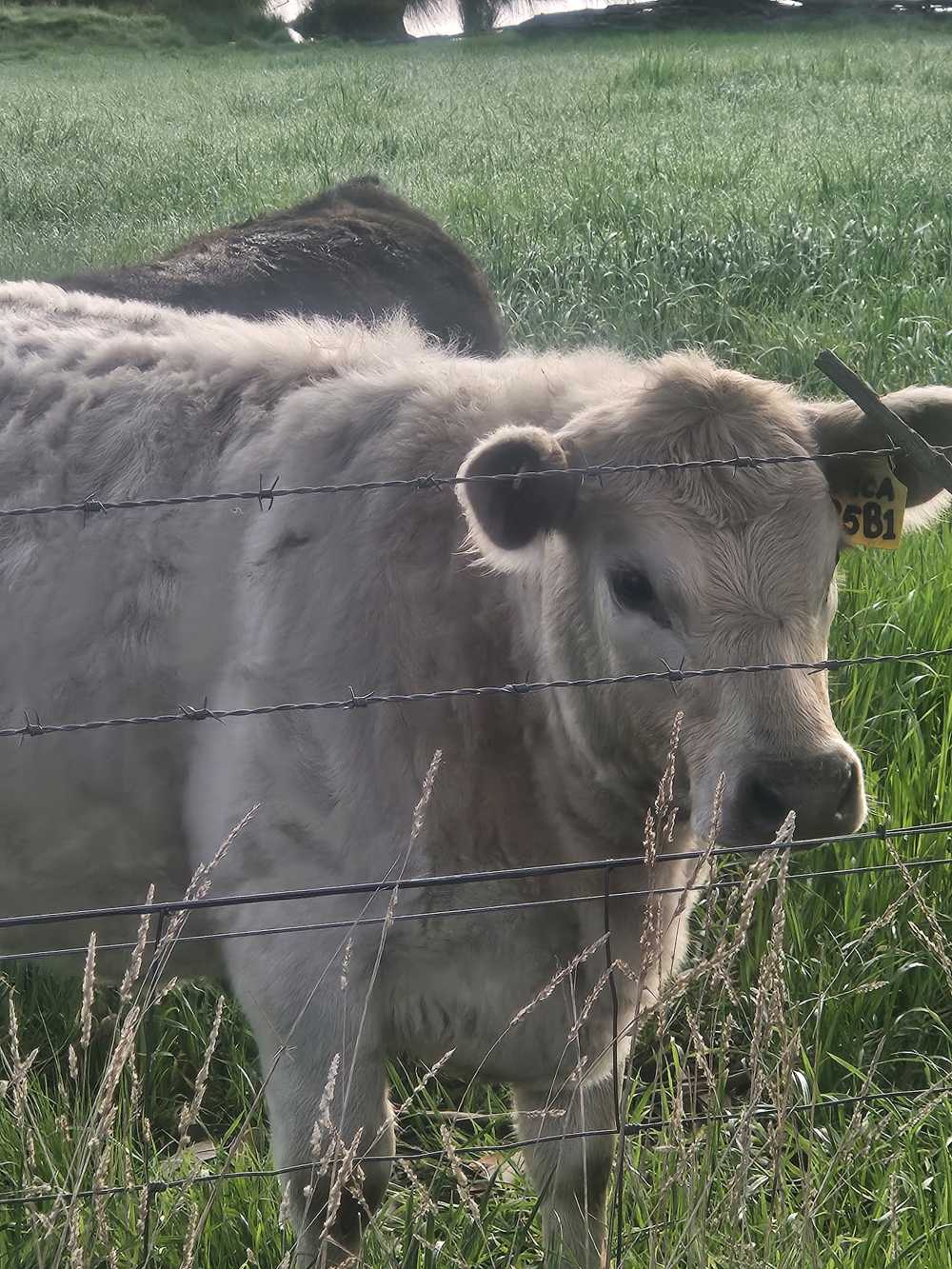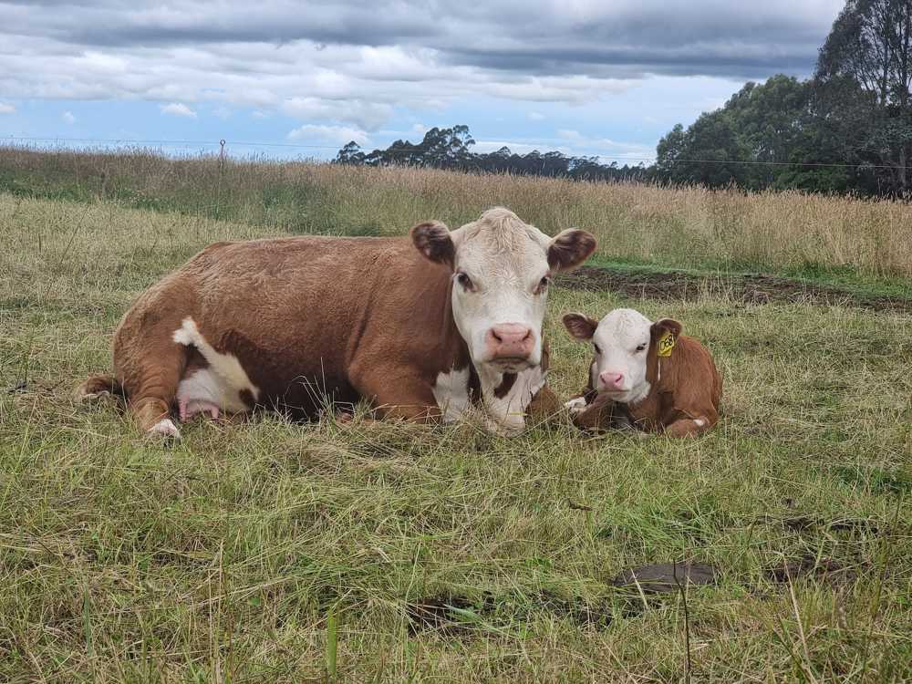 This is a photo of my family's calf born in July named Oops. He was a complete surprise and he had to be born through a caesarean and we weren't sure if either the mum or calf would survive but they're still walking around eating all our pasture today.