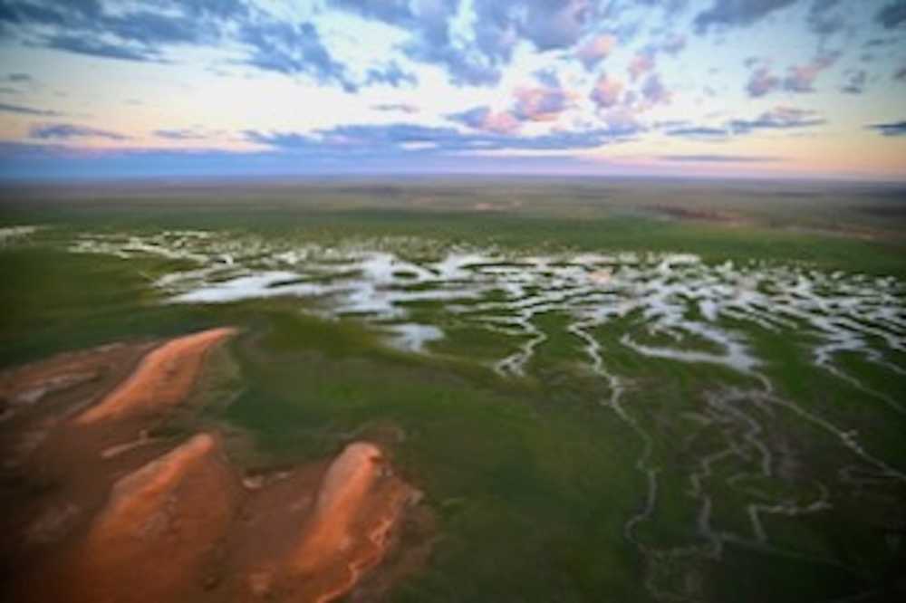 Channel Country Flood - the sand hills and channels flooding after the Mar/Apr 2025 floods in Western Qld.